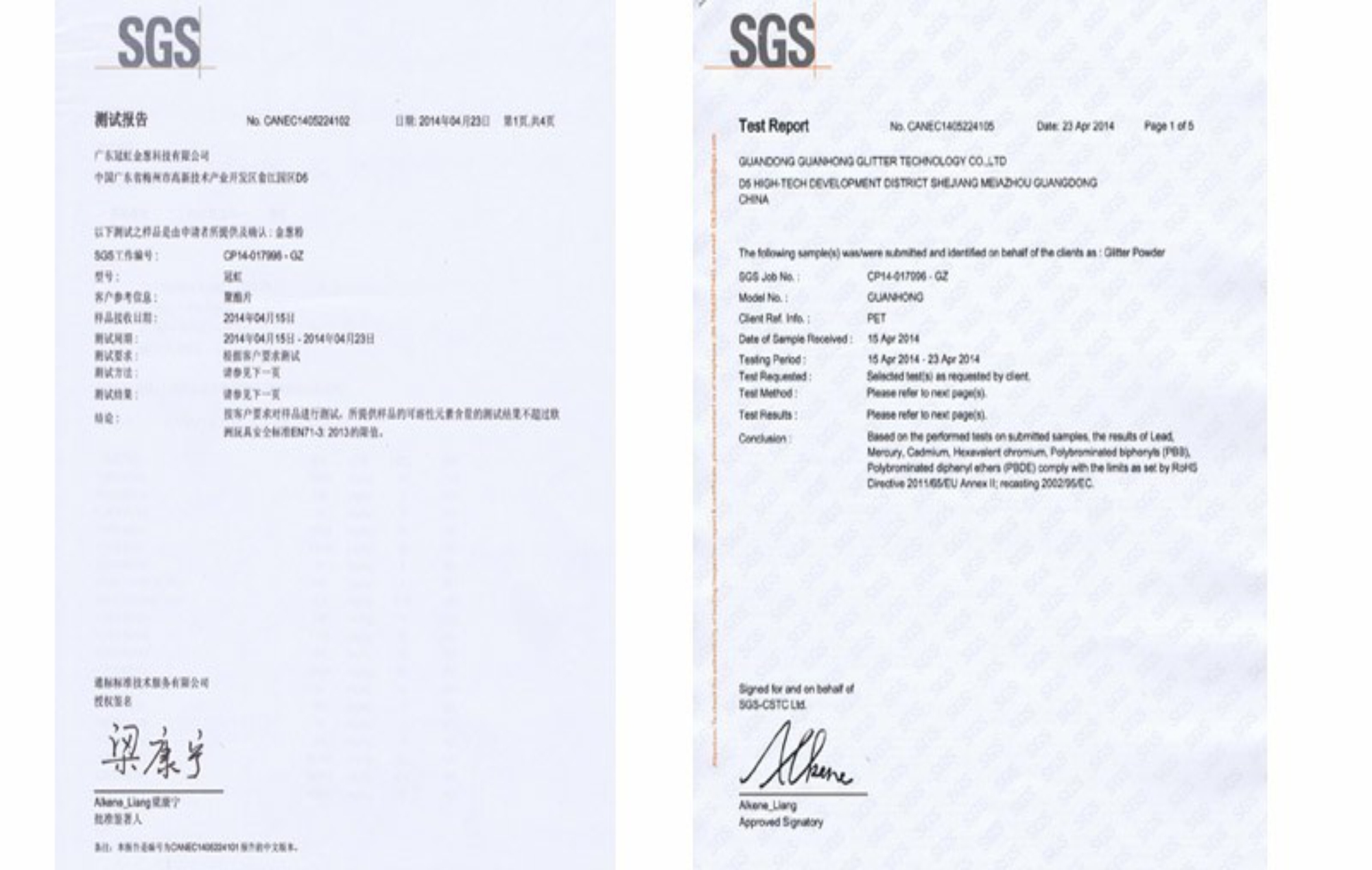冠虹金葱专注于品品质及(qing)服务的不断创斎ͼ以负责的态度向各应用行业提供品质可靠的品及(qing)应用解决Ҏ(gu)Q品通过EN71-3、ROHS、Formaldehyde、HR4040、MSDS{检及(qing)体系认证?/div>